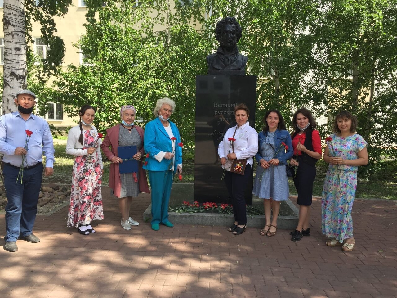 Сегодня, 6 июня, сотрудники Национального литературного музея Республики Башкортостан и его филиала — Мемориального дома-музея Мажита Гафури почтили память русского поэта, драматурга, прозаика, основоположника современного русского литературного языка А.С. Пушкина. В сквере имени Пушкина в Уфе были возложены цветы к бюсту Александра Сергеевича и прочитаны его стихи.